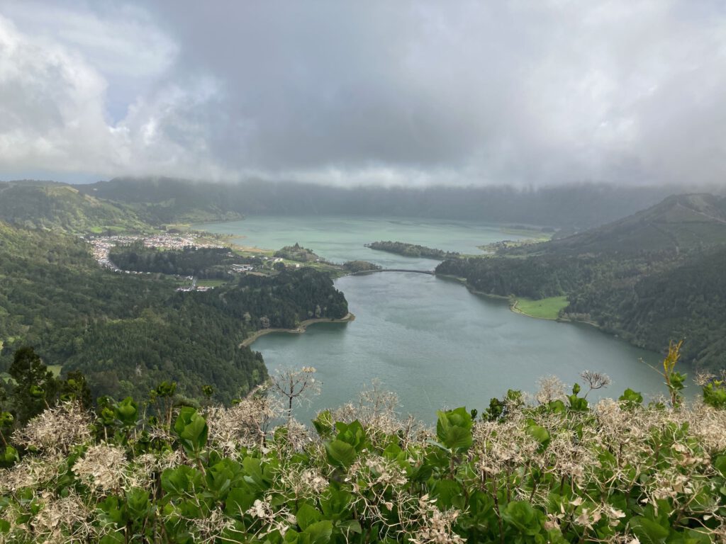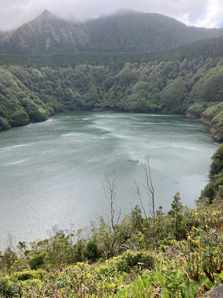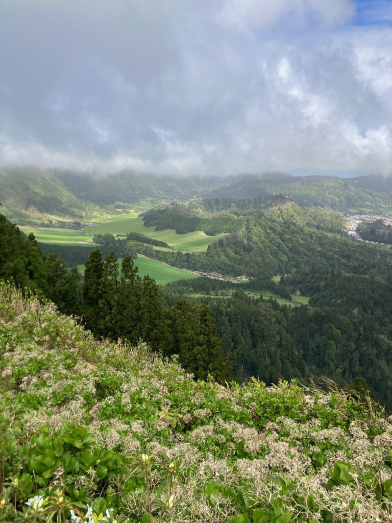 Wir haben einen kleinen Busausflug in das Innere der Insel gemacht. Die Azoren sind auch vulkanischen Ursprungs, wie die Kanaren, aber sehr viel älter. Darum ist die Landschaft dort nicht mehr so schroff und karg, sondern eher hügelig und ziemlich grün. Es gibt viele Kraterseen und oberhalb von 300 Metern ist es ziemlich feucht.