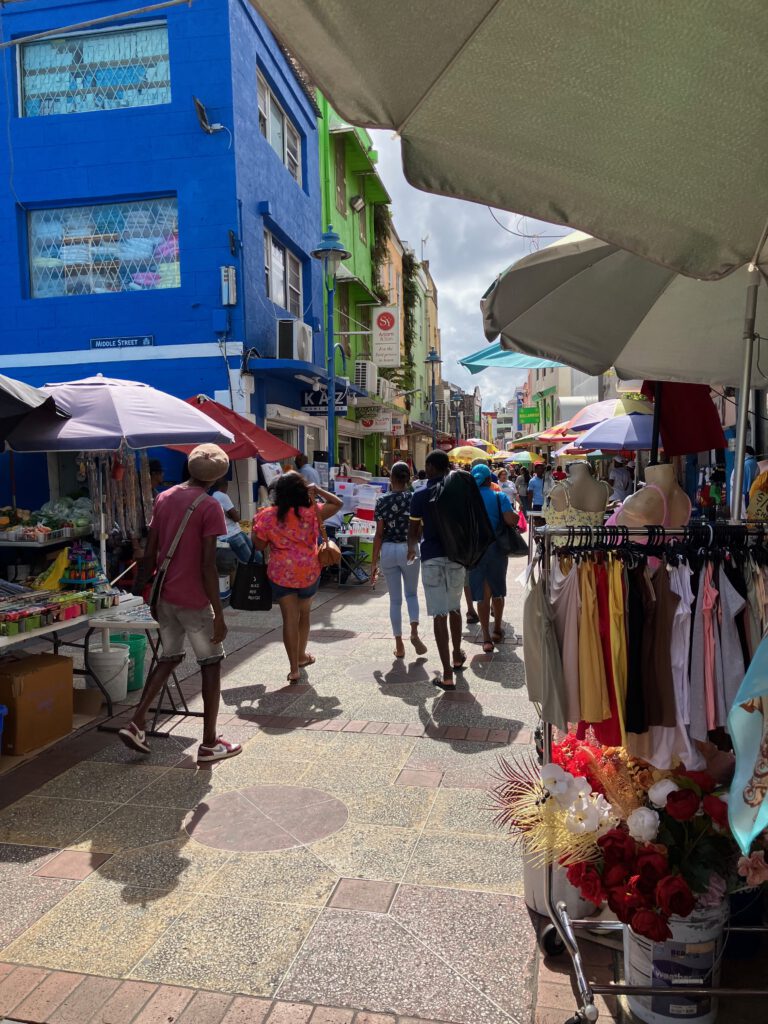 Die Briten haben mit ihren Bauwerken Bridgetown geprägt. Inzwischen gehört Barbados nicht mehr zum United Kingdom, sondern ist komplett selbständig. Das moderne Nationaldenkmal steht jetzt vor den, von den Briten hinterlassenen Bauten im alten Stadtkern. In den Straßen gibt es jede Menge Märkte, teilweise in Markthallen oder einfach auf der Straße. Dort wird alles bunt durcheinander angeboten, Gemüse neben billigen Klamotten und Plastikschrott aus China. Das fand ich eher anstrengend und mit wenig Flair. Witzig waren dagegen die sogenannten Reggae-Busse, mit denen man bequem auf der ganzen Insel herumkommt.