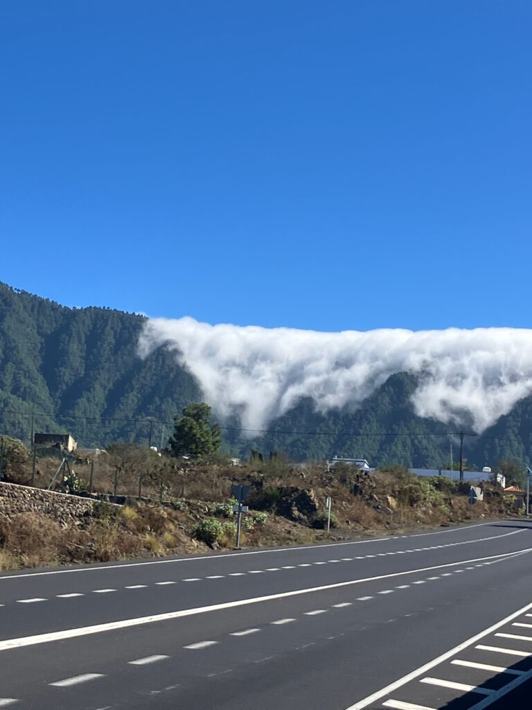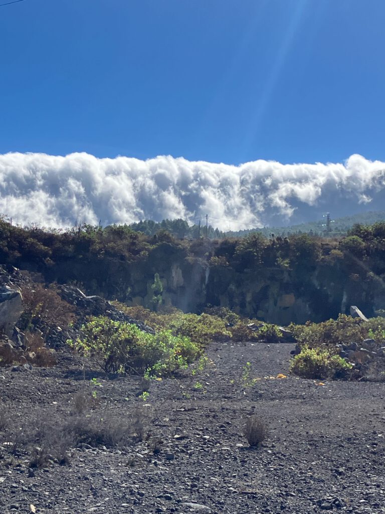 Die Temperaturen liegen immer noch so um Mitte zwanzig Grad, aber zum wandern ist das schon ganz okay. In der letzten Woche war es oft auch ziemlich bewölkt und von der Ostseite zieht dann gegen Mittag die Wolkenschicht über den Gebirgskamm, der La Palma in der Mitte teilt. Wolkenwasserfall heißt dieses Phänomen hier, das man auf der Westseite beobachten kann.